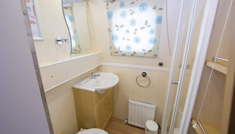 Full size shower with bi-fold door