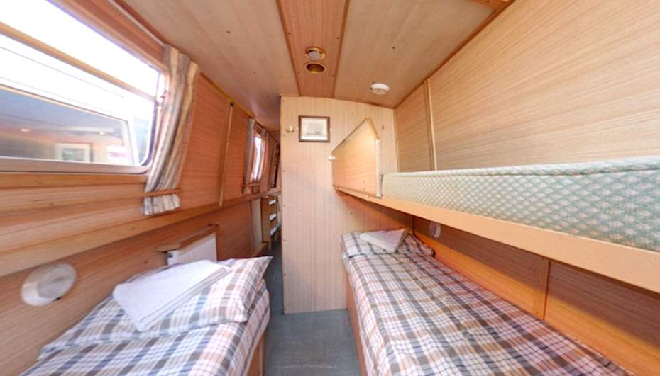 Please note that the optional high level single berths that provide the 9th & 10th berths in the forward & rear cabins have a 10 stone weight limit and may not be used over a double bed